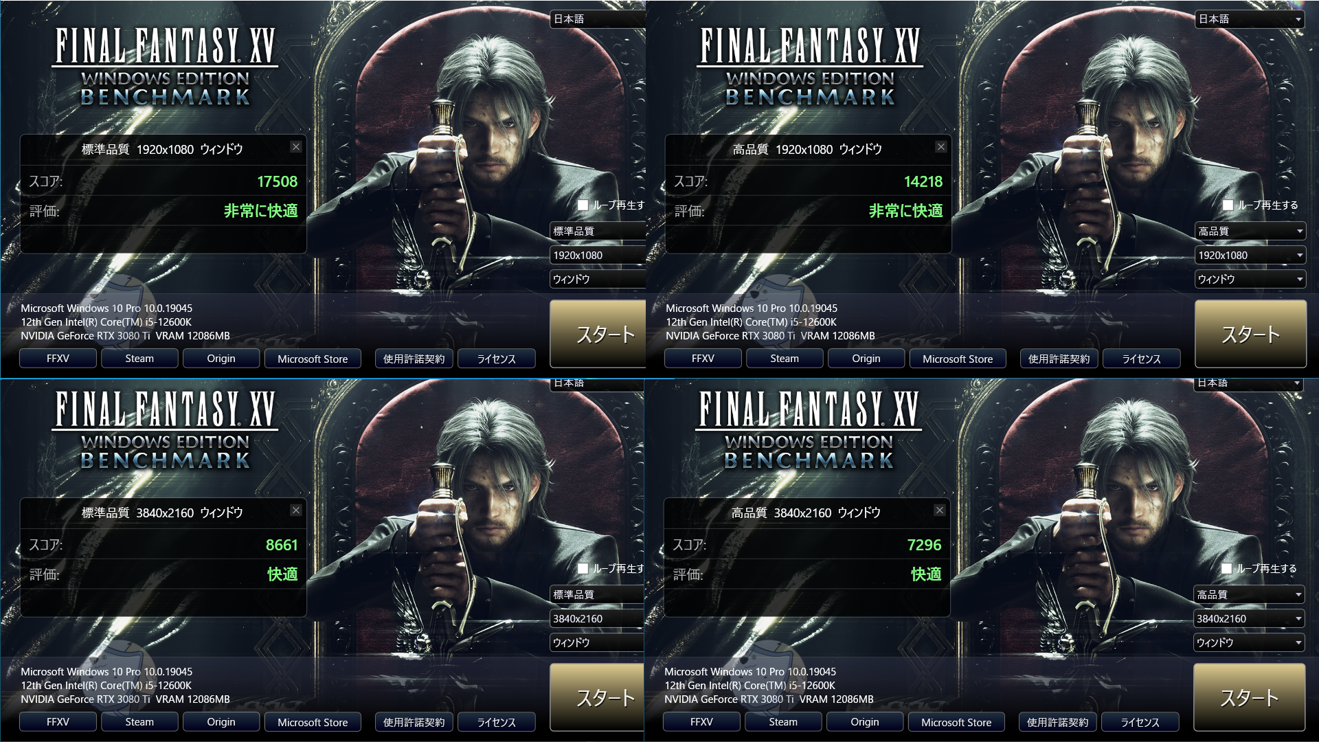 | 標準品質、FHD、Windowモード | 12921 | 非常に快適 | 17508 | 非常に快適 |