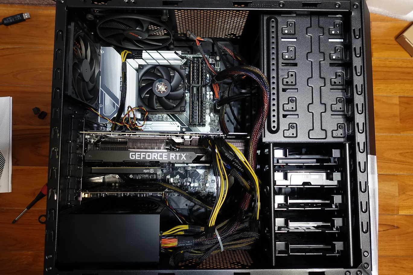 ※メモリが48GBの中途半端な理由は、もともとの容量が32GBで追加の16GB×2を購入したのですが、4スロット全て埋めるとマザーボードが認識しない現象が発生して、3枚挿しになっているからです。最終的にマザボを交換すると4枚全て認識できたので、現在は64GBです。